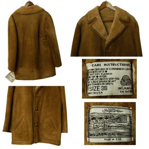 B品訳あり SAWYER OF NAPA ラムスキンムートンコート 裏ボア メンズ 【USAデットストック】ムートン レザー クルミボタン アメリカ製